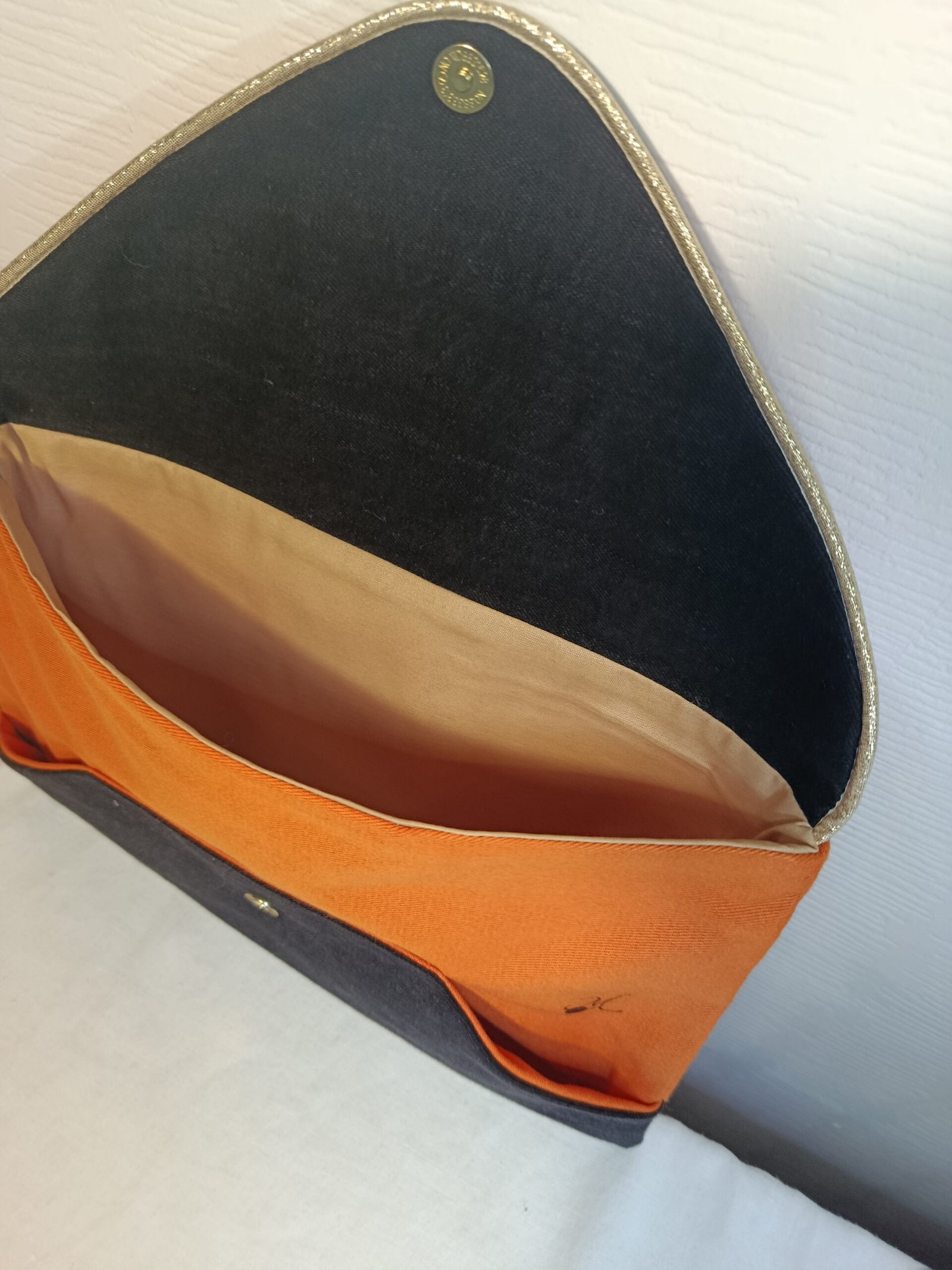 La pochette « Orange » est un accessoire de mode élégant et sobre. Elle peut être une pochette de soirée ou une pochette pour ranger son livre ou sa tablette dans son sac.