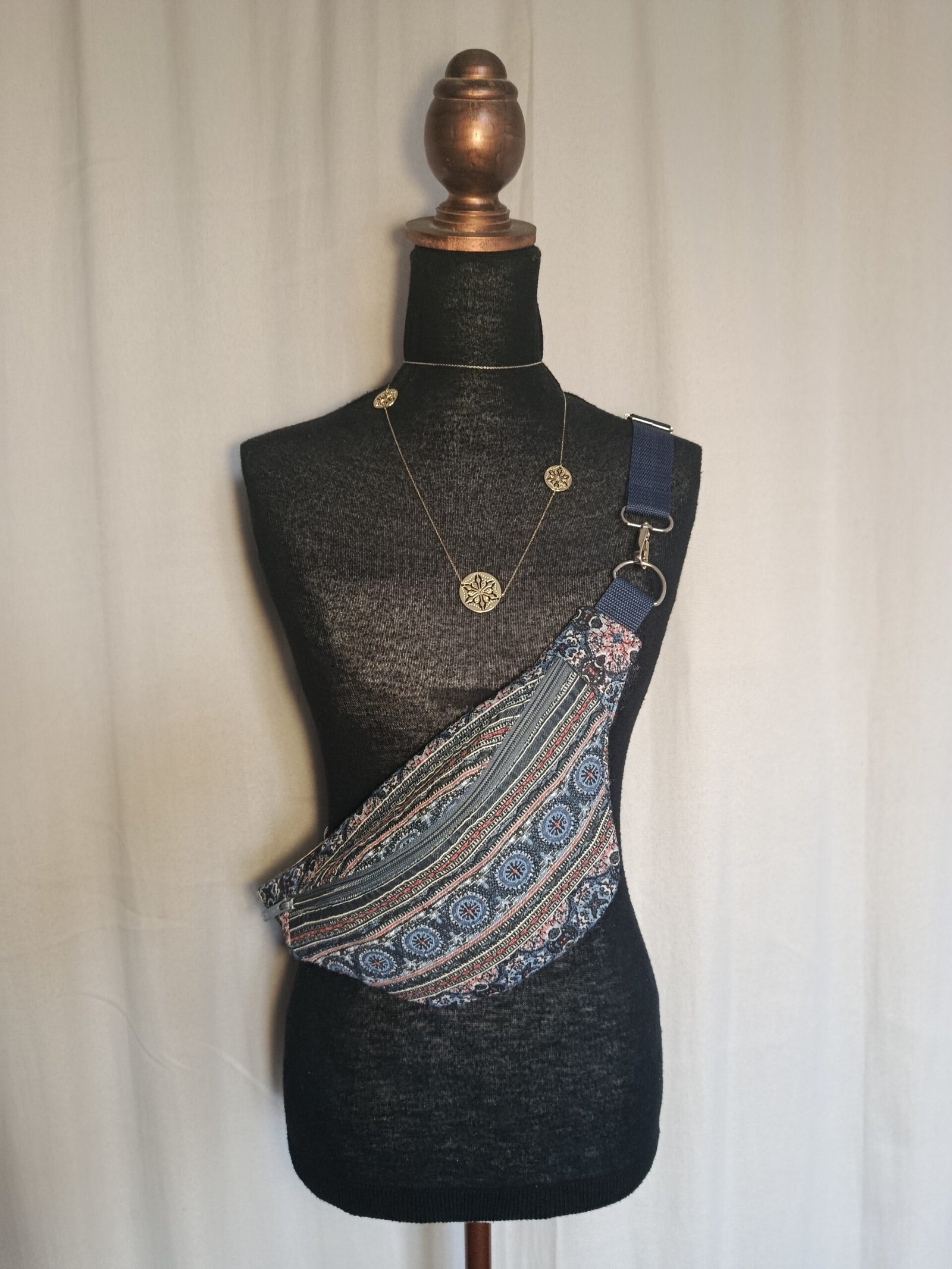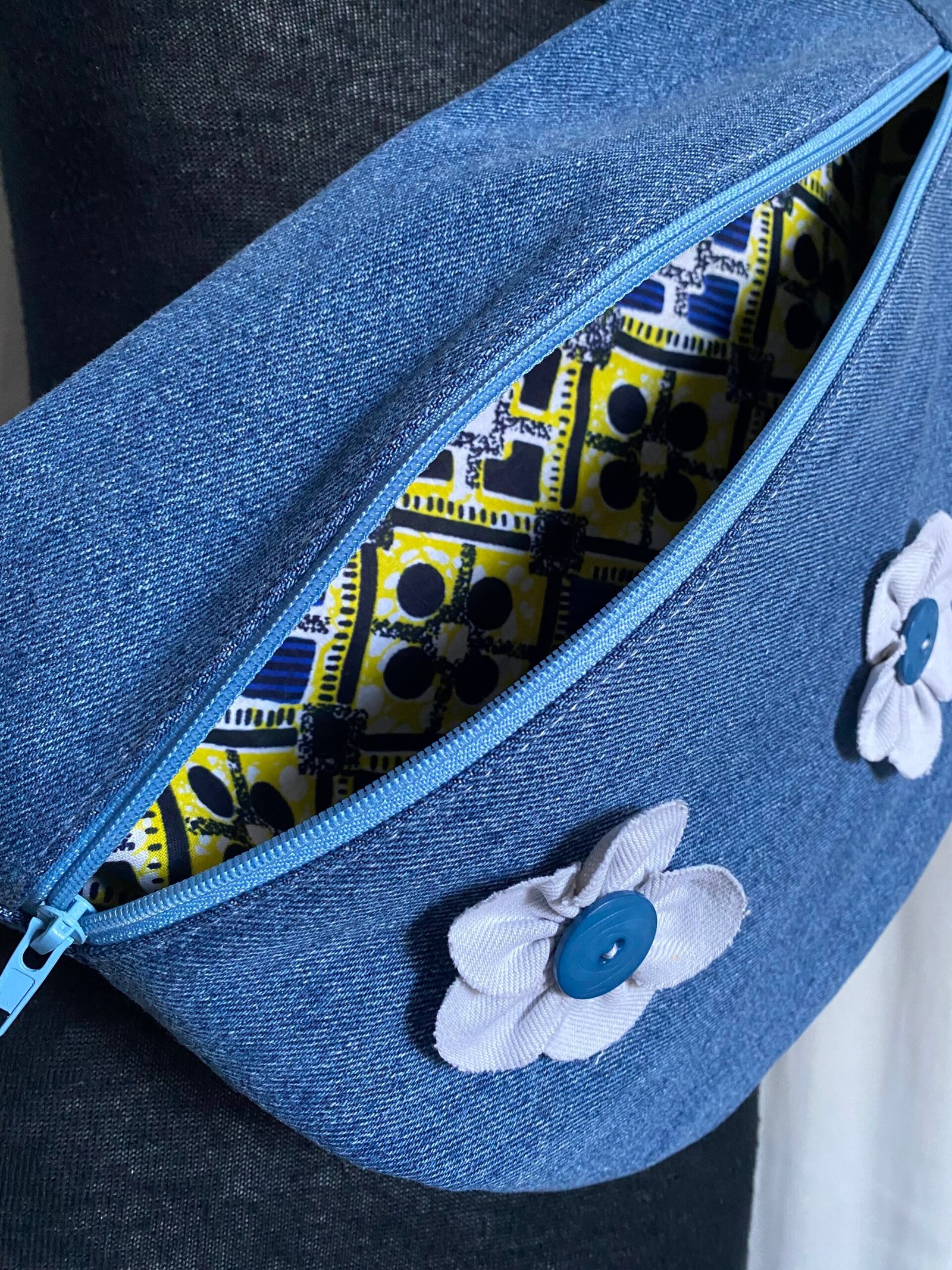 Avec sa anse réglable, le sac banane « Jeans » est pratique et confortable. Son originalité est qu’il est plat, donc peu encombrant, mais son grand format lui permet de transporter tous les objets du quotidien en toute sécurité.
