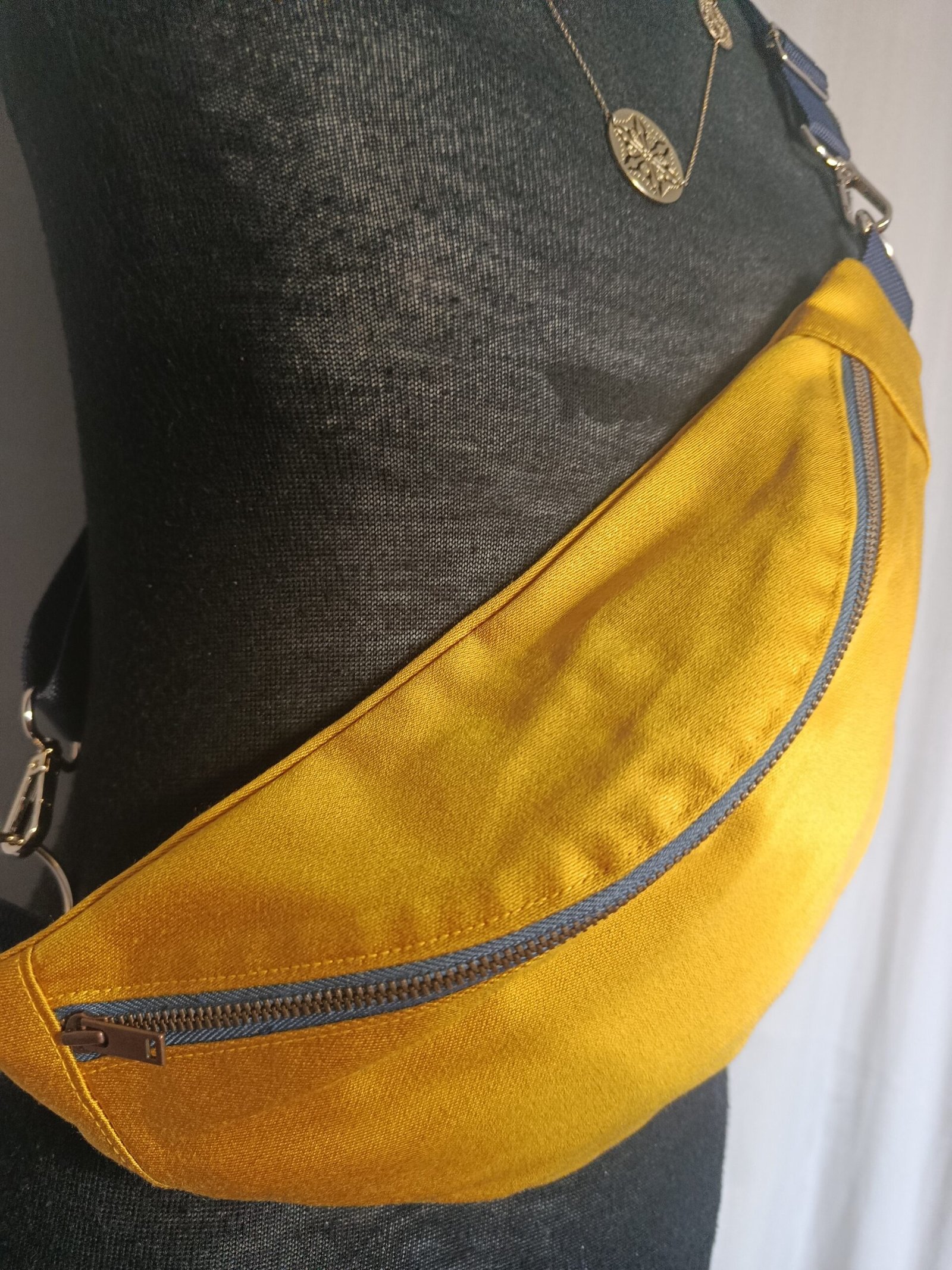Le sac banane « Or », est fait à la main et confectionné avec soin en modèle unique. Idéal pour les amateurs du fait main et des sacs authentiques.