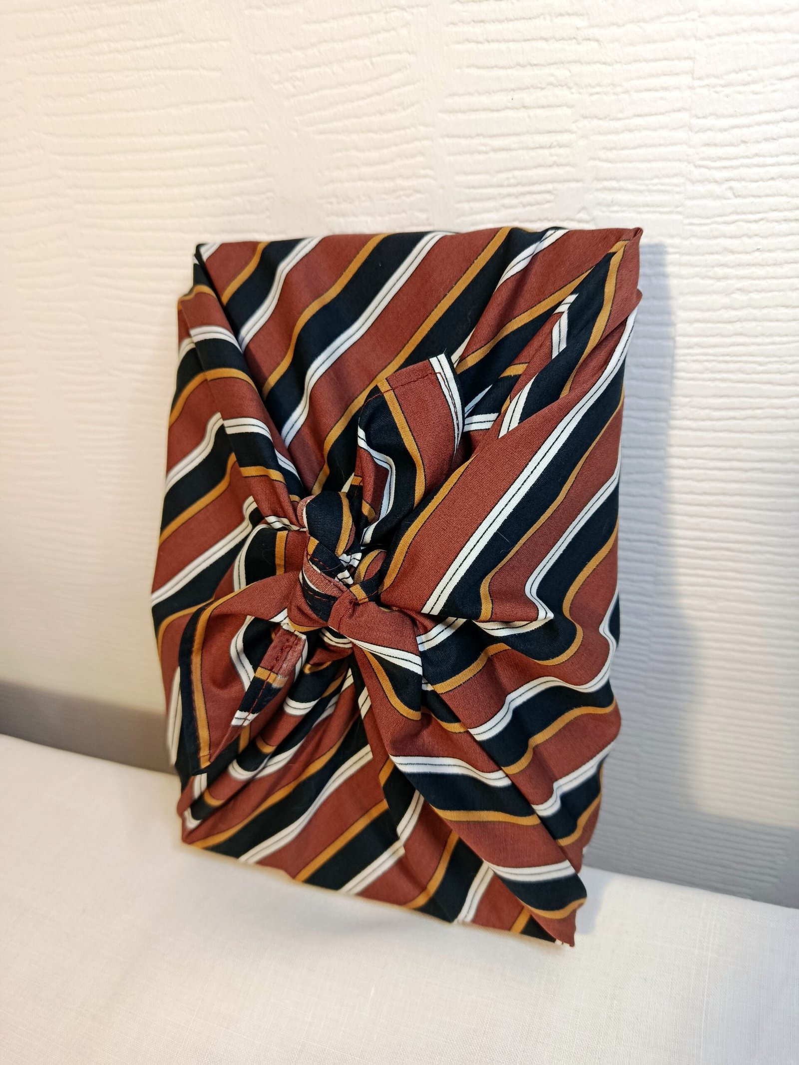 Appelé le furoshiki, cela désigne aussi bien l’emballage tissu que la technique japonaise de nouage et de pliage pour emballer vos cadeaux.